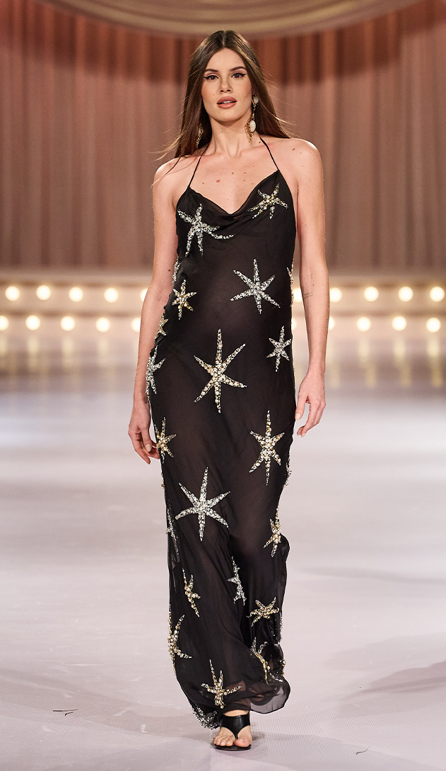 No instante exato que antecede o brilho, quando tudo ainda é preparação, silêncio e expectativa. Inspirada no universo do cinema e no imaginário das grandes protagonistas, a coleção mergulha no momento em que a história começa a ganhar forma.